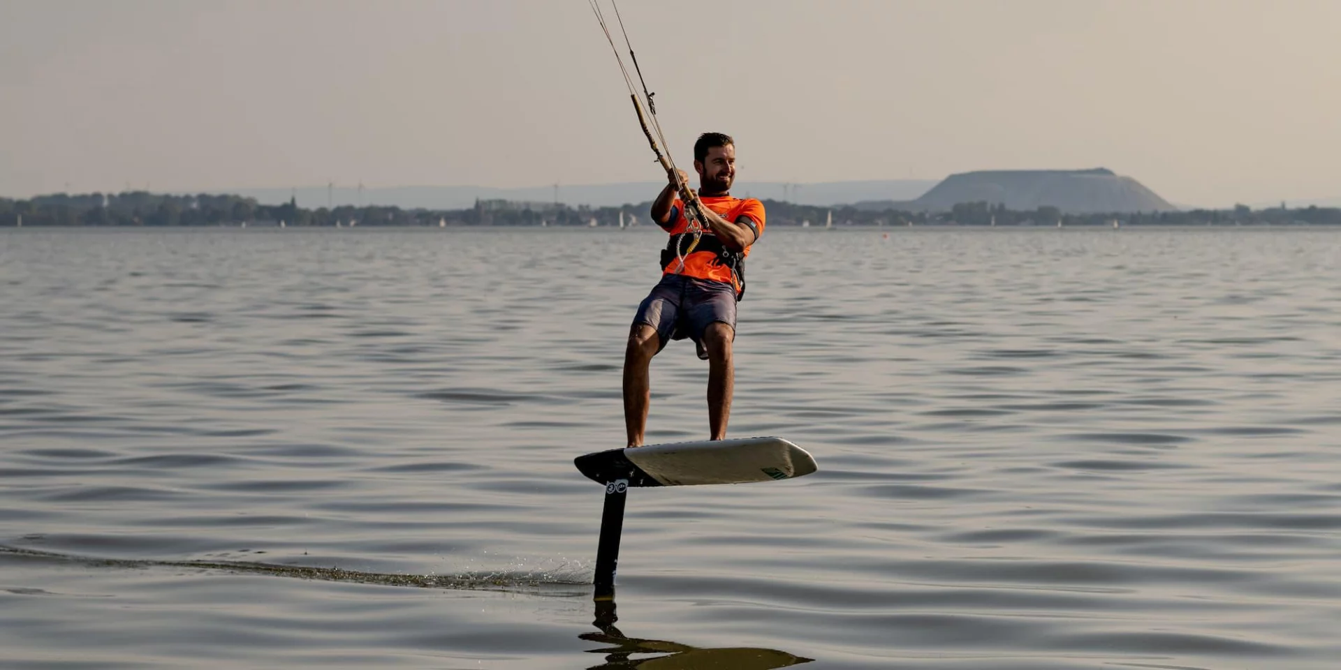 Schwebe schon ab 8 Knoten ganz entspannt und geräuschlos über das Wasser, wenn andere noch nicht mal ans Kitesurfen denken!